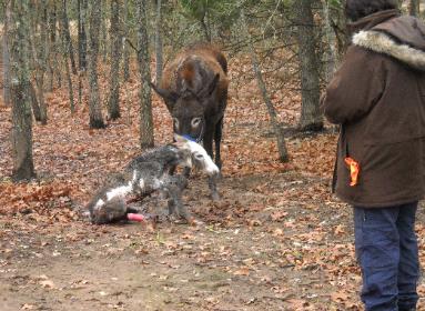 Topping the headlines is our new filly, Jesse. She arrived moments after Jane, Casey, Josh, and Mac left after a post Christmas Parade lunch. Pictured on the right, was her first attempt at getting to her feet at about 15 minutes after she was born. It took her four tries to get up, and on wobbly knees, she started nursing right away. |