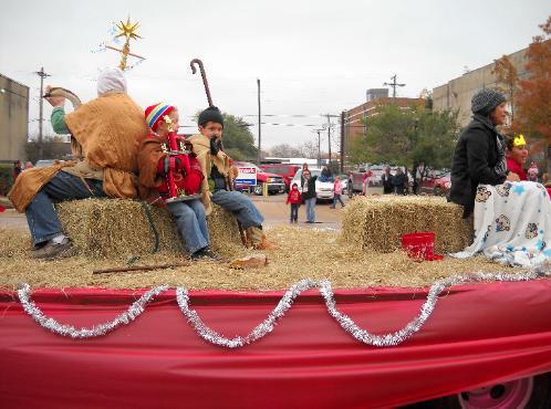 Before the blessed Jack Ass event, Carter, Josh, & I got up at 5am to get ready for the Terrell Christmas Parade. The shepherd boys really have their "parade waves" down pat. Josh is holding our (St. Johns) trophy. |